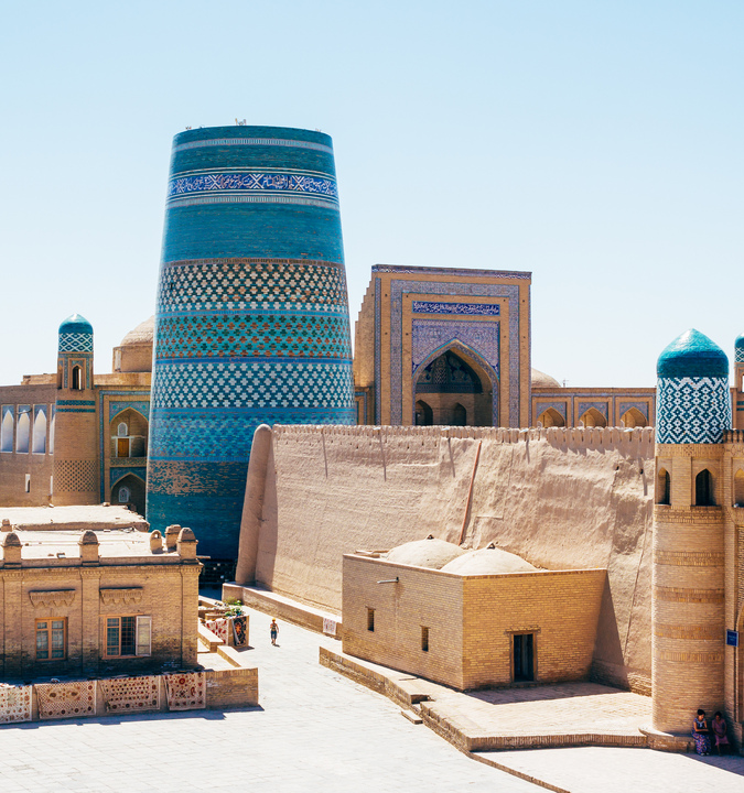 Step through Khiva’s gates into a walled world of sand-colored towers, moonlit alleys, and whispering walls